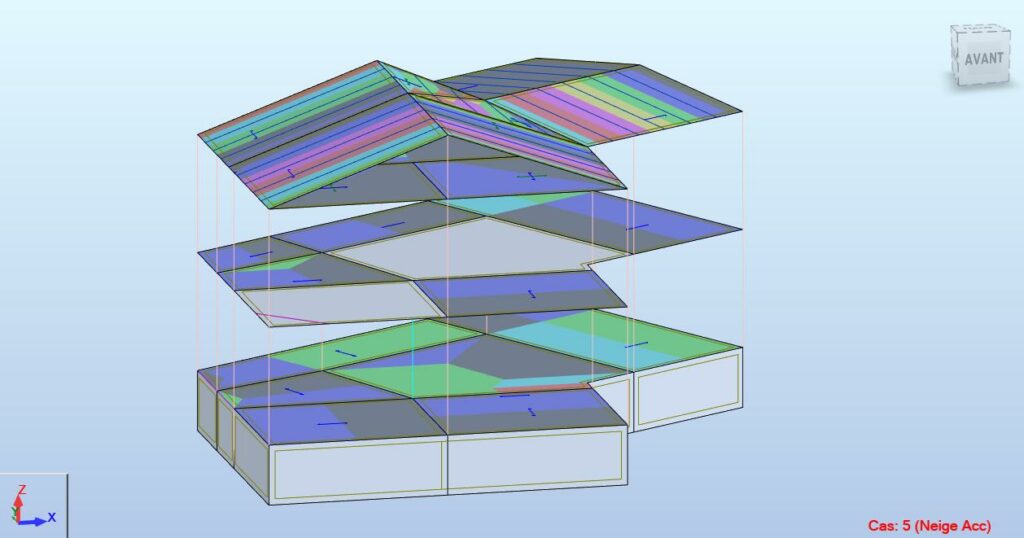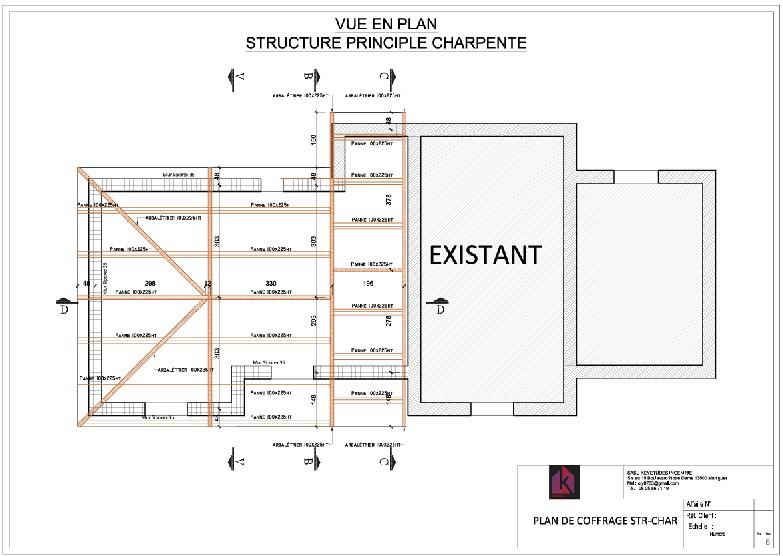 Nous avons dimensionné le plancher et les éléments de la toiture de type fermettes et avons établis les plans d'exécution pour l'Entreprise.