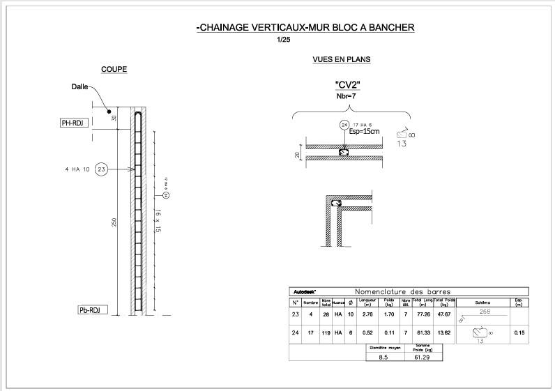 Nous avons établis le dimensionnnement adéquat pour la tenue du mur sous charges de soutènement.